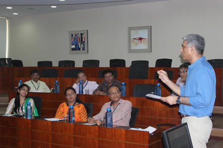 Total 22 TPOs from 20 different engineering institutes from across Gujarat participated in the Training & Placement Officers’ (TPO) Meet held on May 12, 2016. The half-day Meet primarily involved a focused open-house discussion on “Role & Challenges of a TPO in Institution-building” moderated by Prof Diptiranjan Mahapatra. It was followed by a short section on “Career Opportunities in Infrastructure Sector.